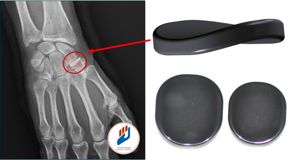 L’implant pyrocardan est une solution moderne et validée. Ce matériau, initialement développé pour la chirurgie cardiaque, est très bien toléré par l’organisme. Il présente un module d’élasticité proche de celle de l’os, ce qui permet de mieux répartir les charges et de préserver les articulations voisines. Interposé entre le scaphoïde et le trapèze-trapézoïde, l’implant agit comme un coussin mécanique, supprimant la douleur tout en conservant la mobilité et la force du poignet.