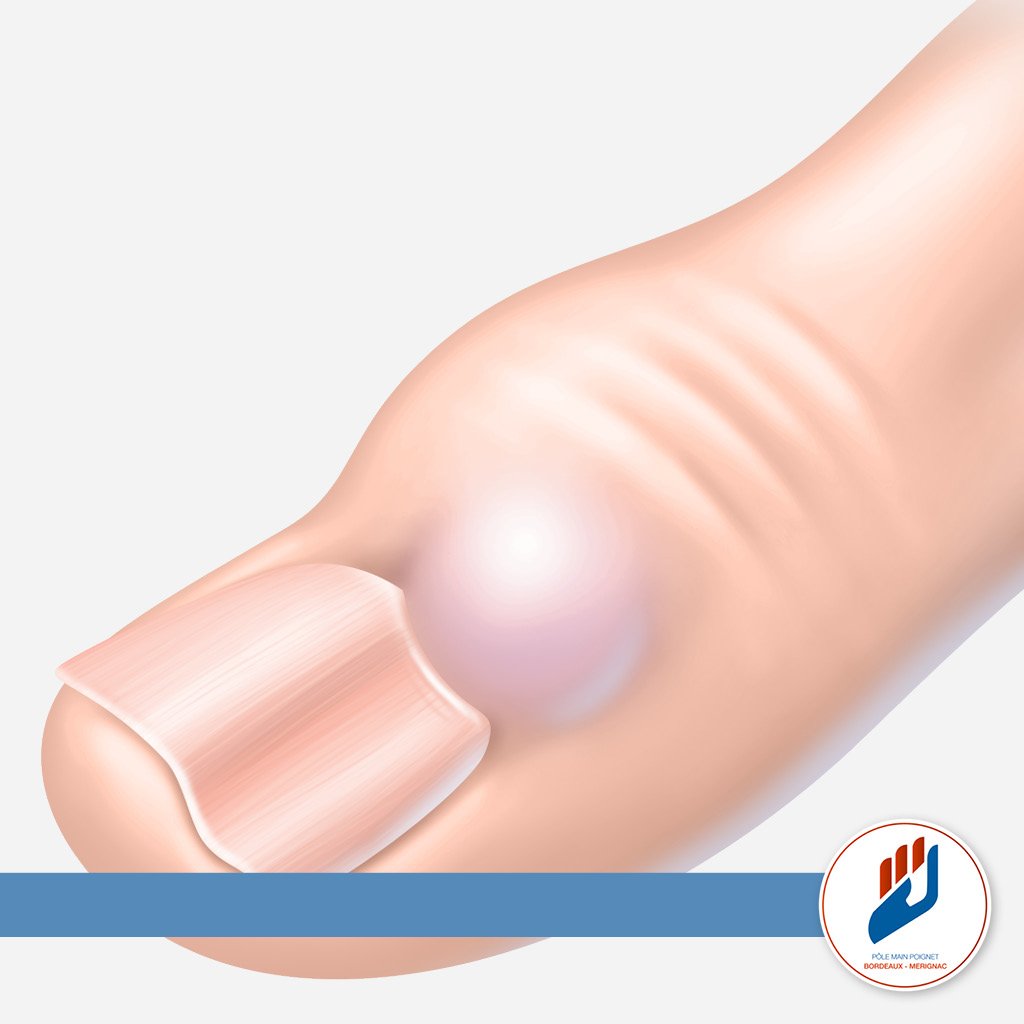 C’est une tuméfaction tendue, plus ou moins mobile, apparaissant au niveau du poignet ou de la base d’un doigt.